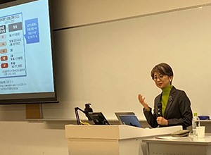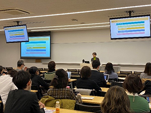 2026年3月4日、講師に島田めぐみ先生(日本大学)をお迎えし、「日本語教育の参照枠と評価」というテーマで言語教育研究センター主催のFD講演会を開催しました。学習者に対する評価法を専門とする島田先生の視点から、2021年に誕生した「日本語教育の参照枠」の重要性と理念が解説され、その理念を体現する評価法の事例紹介、そして今後の課題へと話題が展開しました。